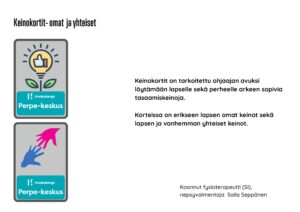 Keinokortit on tarkoitettu ohjaajan avuksi löytämään lapselle sekä perheelle arkeen sopivia tasaamiskeinoja. Korteissa on erikseen lapsen omat keinot sekä lapsen ja vanhemman yhteiset keinot.
